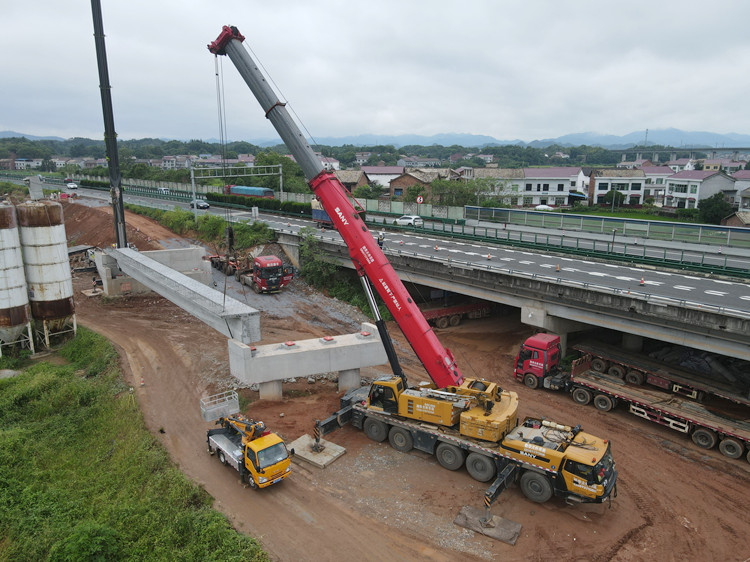 在交管人员的提前部署以及指挥下,运梁车缓慢进入高速公路,行驶400米后,又顺利地进入施工现场。在进行吊装前,项目部组织所有作业人员,管理人员,交通指挥人员等进行了安全技术交底,根据专项方案要求每个人熟悉其工作职责及安全要求。组织人员多次在现场论证交通管制,封闭车道运输,现场起吊等方案,各部门配合井然有序,与当地交警部门,醴潭公司路产部门充分协作、默契配合,相互信任地完成此次运输工作。